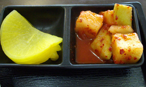 I don’t have much in particular to talk about today, but I figured I needed to work toward positive behaviors, writing a lot of nonsense blogs being a positive behavior in my view of things. That said, I did take a bit of a trip yesterday: I ventured outside city limits. Not only that, I crossed into another city’s limits. I know, it sounds like I’m living pretty dangerously, and while I assure you that there is some level of peril driving on roads around here it’s not really enough to constitute a dangerous lifestyle. Anyhow, on this excursion I made a point to stop at an Asian foods market and see what kind of things they were offering up for purchase. Turns out, it pretty much had all my favorite things I’d been missing from my recent travels to the East, so it ended up to be a very fruitful expedition. This morning I enjoyed some of my bounty in the form of キムチたくわん (kimchi takuan) and its delicious spiciness has left me feeling energized all day. Thanks pickled vegetables!!